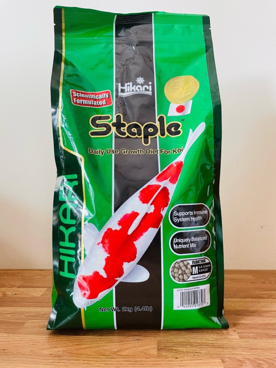 Hikari Staple is a lab formulated, daily diet, for feeding Koi and other pond fish in warmer water temperatures. The uniquely balanced ingredients support rapid growth, proper form and efficient utilisation. This floating diet will not cloud your water and contains necessary vitamins, including stabilised vitamin C to support immune system health.